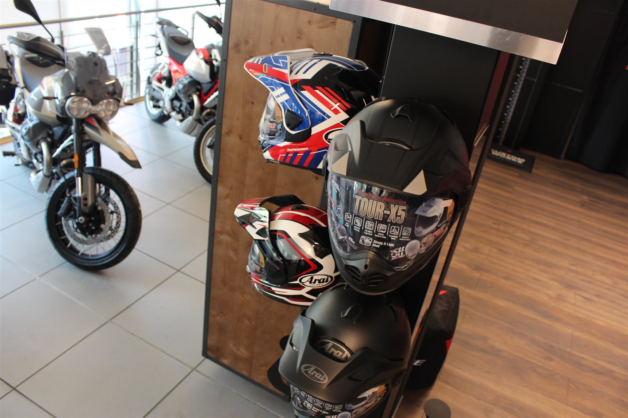 Da wir selbst seit Jahren die Produkte von Arai und Dainese tragen, war für uns schnell klar, welche Hersteller wir in unser Sortiment aufnehmen. Deshalb findest Du bei uns neben Touring- und Sporthelmen des Traditionsunternehmens Arai auch ausgewählte Einteiler sowie maßkonfektionierte Lederkombis von Dainese ausgestattet mit dem bewährten D-air® Airbagsystem.